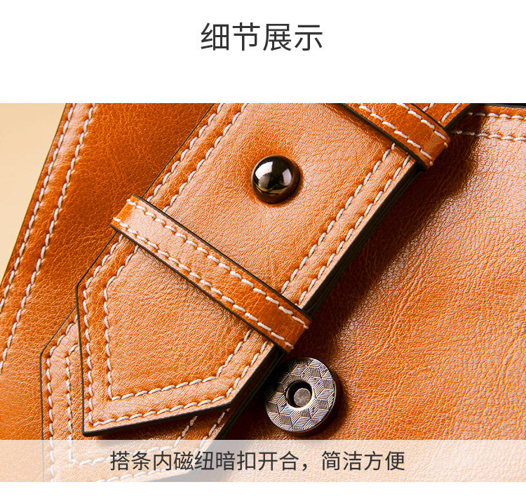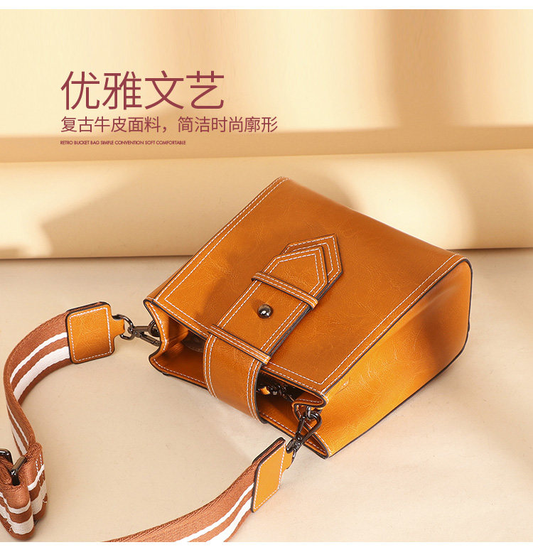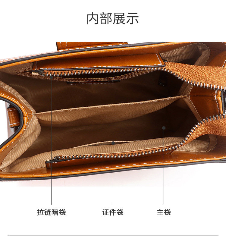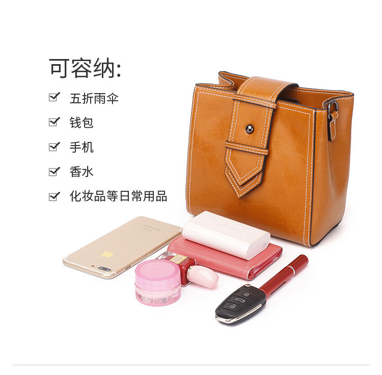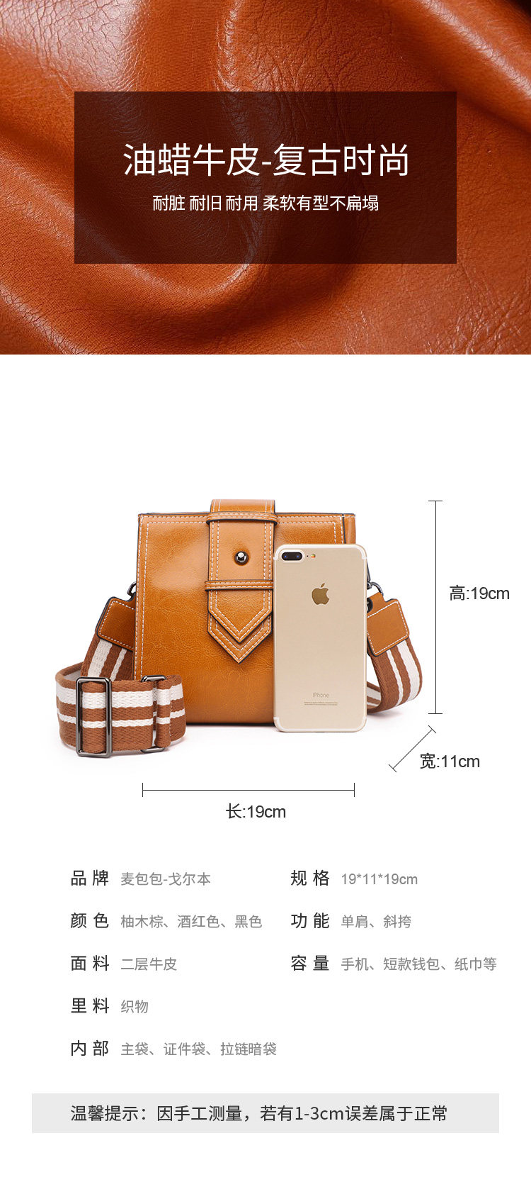 麦包包女包2019新款文艺复古油蜡牛皮小方包单肩斜挎包潮流宽肩带--柚木棕
